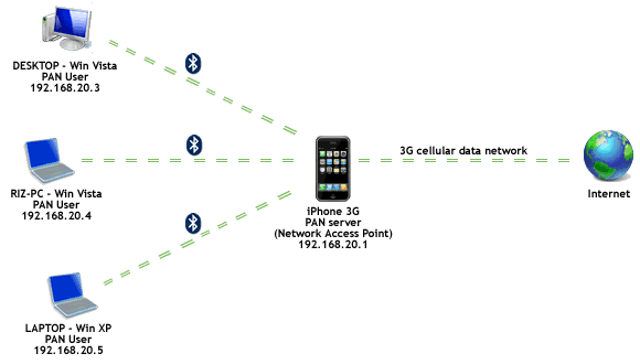 Internet Tethering over Bluetooth Setup on iPhone 3G and